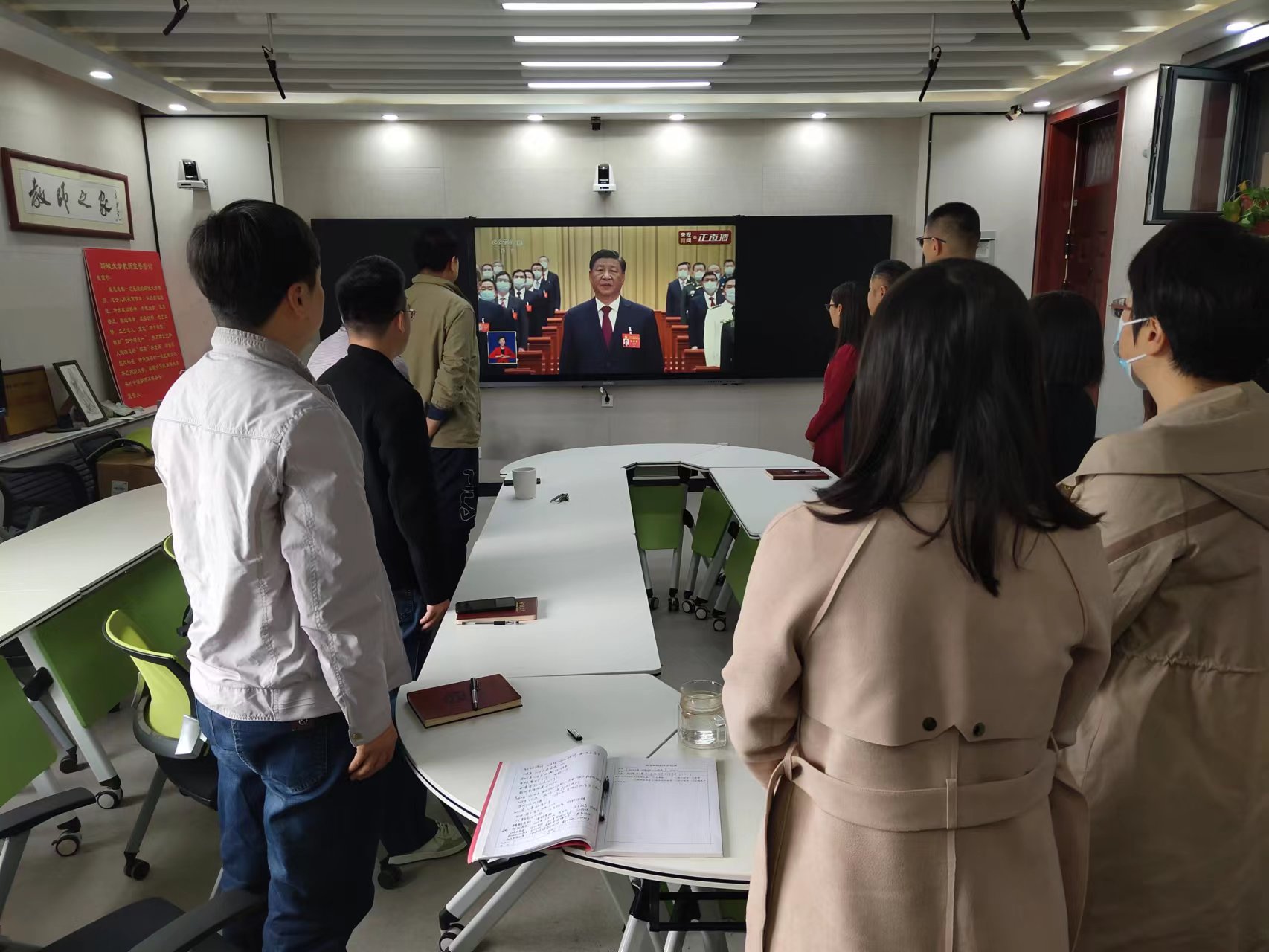 为使全体党员感受中国共产党第二十次全国代表大会的盛况,了解五年来全国取得的新成就,10月16日上午,人力资源处党支部在办公楼B510会议室集体观看了党的二十大开幕会。