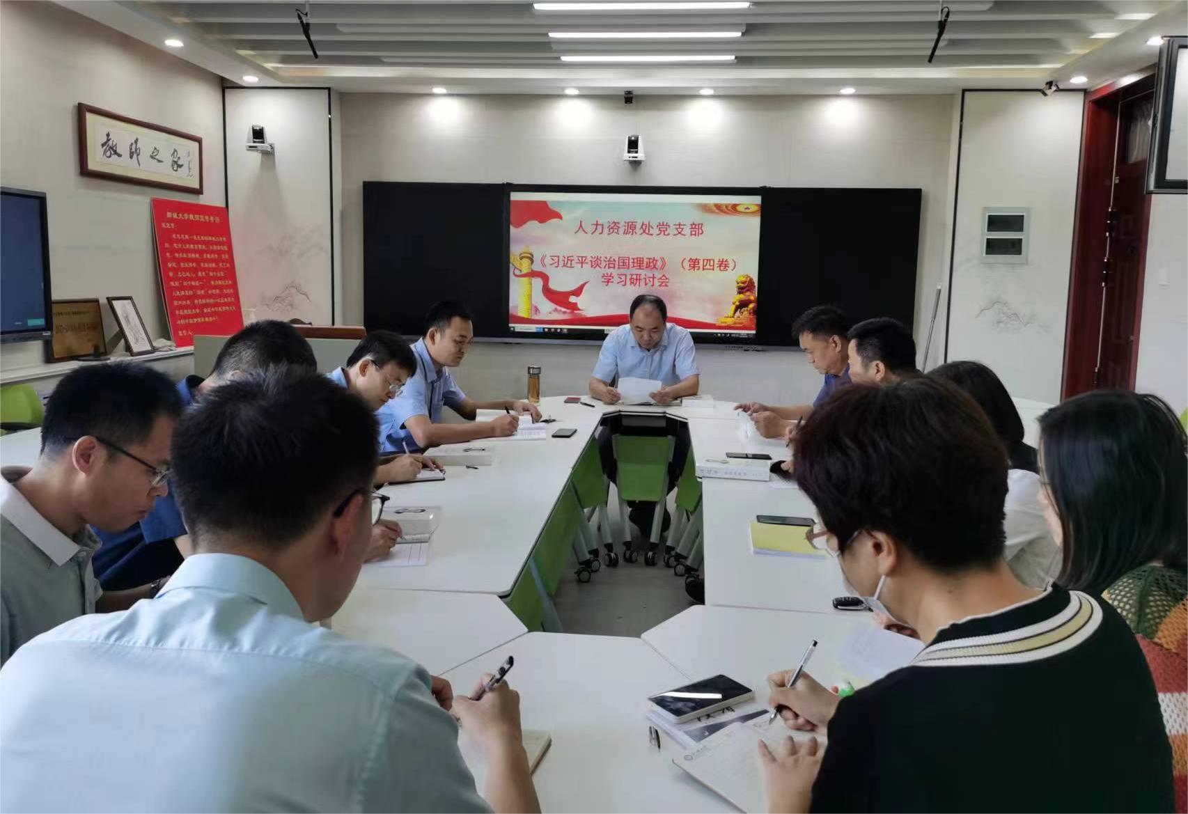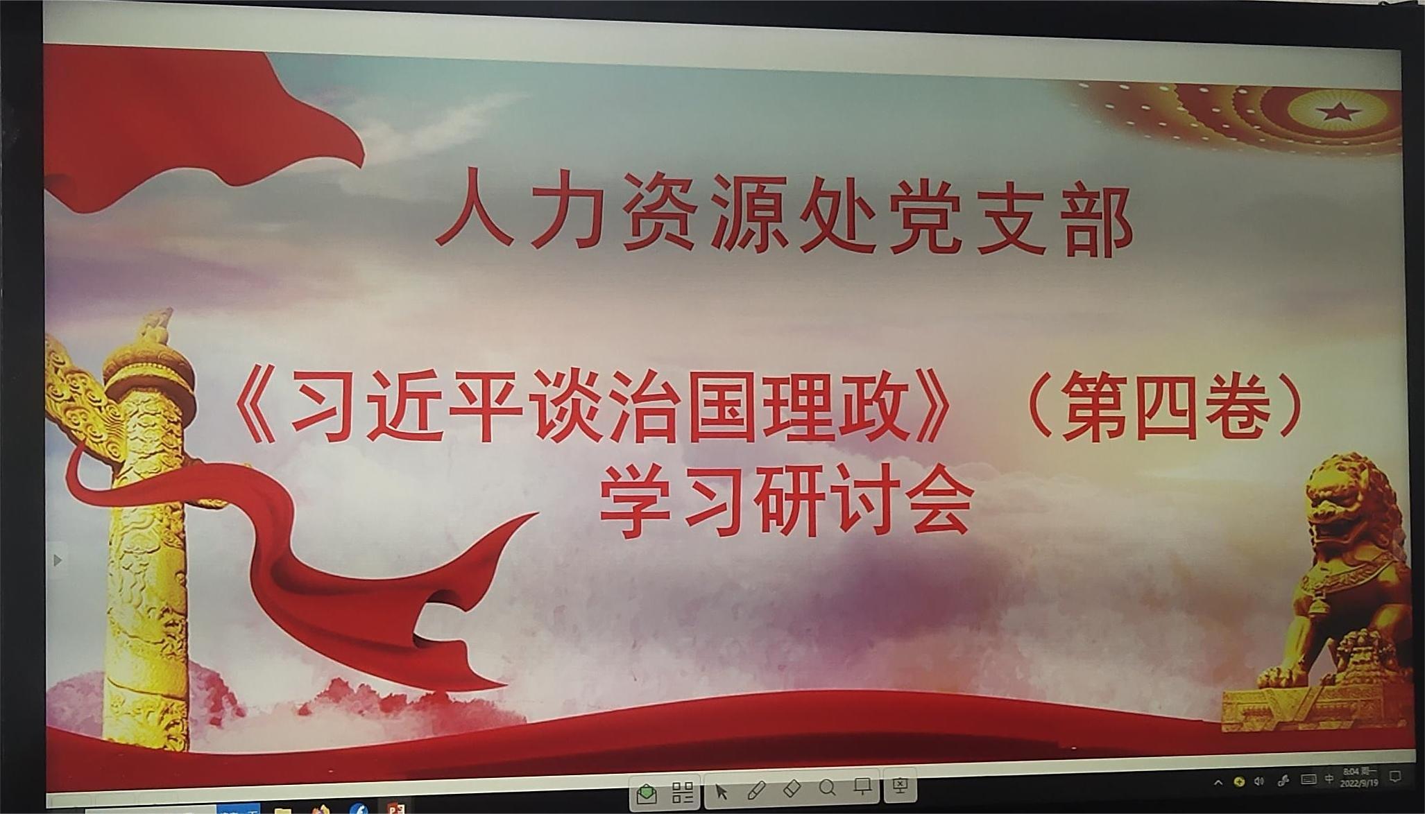 2022年9月19日8时,人力资源处党支部在办公楼B510集中学习《习近平谈治国理政》第四卷。